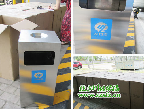 本款不銹鋼垃圾桶是按照貴司的常規熱銷款C60方形不銹鋼果皮箱改造而來的,其規格為:350*350*680mm。不銹鋼垃圾桶外觀不銹鋼色澤,常規不銹鋼垃圾桶桶部上面絲印有禁煙標志,按照顧客的要求改造為桶上方凹圓形槽,用于裝置煙灰頭。不銹鋼垃圾桶桶的正面,旁邊用藍色搭配絲印,鹽田港三個字及LOGO跟不銹鋼垃圾桶色澤一致,金屬亮澤 ,高雅美觀。