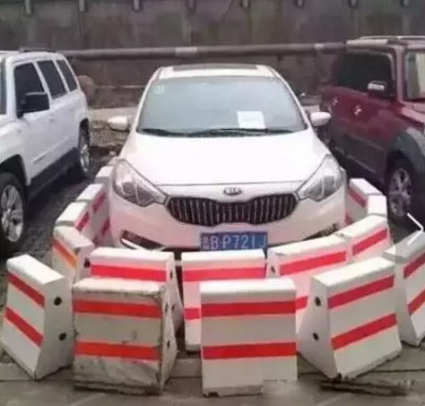2016年6月,武漢一輛紅色雪弗蘭轎車的前后方被幾個大石墩圍住,該車主的停車位置靠近地下車庫出口,是消防通道,不能停車。此前物業(yè)曾多次勸阻和警告其不能在此停車,他卻并不聽勸,只能出此“下策”。