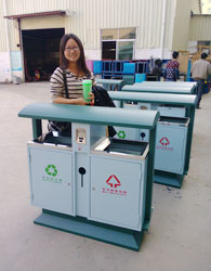 廣州市海珠區維多利亞幼兒園找到我司欣方圳,為他推薦的鋼制垃圾桶。 大家都知道幼兒園里面都是小朋友,如何引導小朋友把垃圾扔進垃圾桶里來。欣方圳垃圾桶專業的設計師,經過多重因素的考慮,就這樣一款專為幼兒園小朋友精工打造鋼制垃圾桶面世!廣州市海珠區維多利亞幼兒園的鍍鋅烤漆鋼制垃圾桶采用冷軋鋼材料,外框鍍鋅鋼厚度為2mm;內膽鍍鋅鐵皮厚0.5mm; 外桶L550*W550*540*H1030MM;新做滴鍍鋅烤漆垃圾桶,搖蓋式雙面投遞,上面絲印工藝的印花保持3到4年。還絲印有可回收垃圾,英文字母及環保標志等。五年以上的熟練老員工,經剪鈑下料、折彎、沖壓、焊接、打磨、等工藝:表面經過除油、噴砂防銹處理后,再進行酸洗磷化處理;表面清理干 燥后整體進行靜電噴涂或烤漆處理,靜電噴涂是經過流水線高溫固化爐固化后再出爐冷卻,加工后的塑粉附著力強,不易剝落。