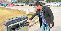 “啪!” 浙江大學(xué)紫金港校區(qū)內(nèi),走出寢室樓的同學(xué)們順手把垃圾袋投入了垃圾房里,有的同學(xué)細(xì)心地查看垃圾箱上貼的標(biāo)識,把垃圾分別扔進(jìn)了“可回...