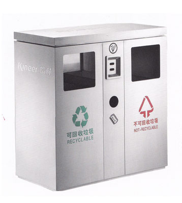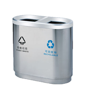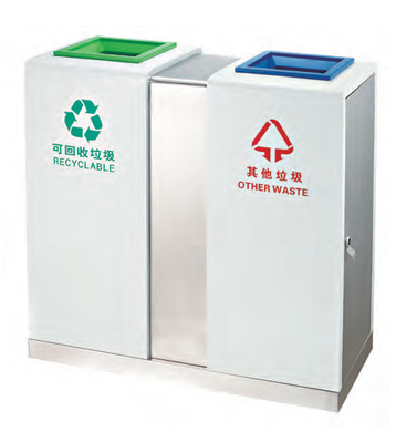 深圳新標準城中村街道社區不銹鋼五分類垃圾桶由有害垃圾、玻璃、金塑紙(為金屬、塑料、紙張的簡稱)、廚余垃圾、其他垃圾這5分類不銹鋼垃圾桶組合而成。其中金塑紙、其他垃圾日常產生量較大,所以分類收集容器也
