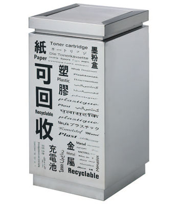 深圳新標準城中村街道社區不銹鋼五分類垃圾桶由有害垃圾、玻璃、金塑紙(為金屬、塑料、紙張的簡稱)、廚余垃圾、其他垃圾這5分類不銹鋼垃圾桶組合而成。其中金塑紙、其他垃圾日常產生量較大,所以分類收集容器也