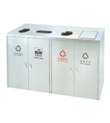 小區垃圾分類站點四類垃圾分類垃圾桶,不銹鋼無疑是較為理想的材質。它戶外防銹蝕效果好,表面金屬光澤高檔美觀,污漬也易清理。不銹鋼分類桶產品款式造型易定制,不受尺寸大小限制,滿足個性化需求,擺放于惠