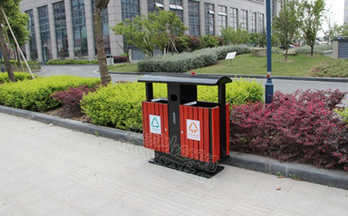 鋼木垃圾桶做工精巧,外觀美觀,不僅具有保潔功能,現在在許多大型城市的大街小港都隨處可見,成為了一條獨特靚麗的風景線。鋼木垃圾桶精挑細選優質進口山樟木,經過除蟲、防疫、防腐,烘干處理后加工成型。表面采用優質戶外高分子漆噴涂,形成可靠防護層,使其戶外使用具有耐候持久,不易破裂、變形、腐爛等優點,歷久尤新。支腳乃優質方通,所有工件均勻進行整體除油、除銹,表面酸洗、磷化等專業處理,表面再經雙層戶外級優質雙層靜電噴粉處理,確保產品歷久尤新。具有美麗的外觀,別致的造型,高檔的形象。