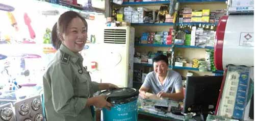 為商戶(hù)配發(fā)垃圾桶,倡導(dǎo)文明經(jīng)營(yíng)