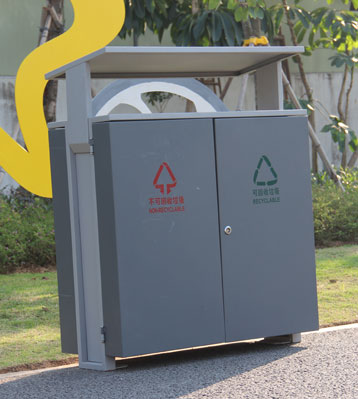 優質冷軋鋼板經剪板折彎焊接成型,酸洗磷化除油防銹工藝烤灰色戶外塑粉,桶身絲印垃圾分類標識有助從源頭精準投放,減量分類環保。