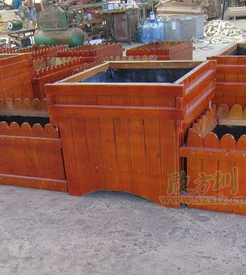 欣方圳木質花箱原材料采用真空泵排除空氣、填充防腐液、加壓滲透、抽真空排出多余防腐液達到先進的防腐防蟲工藝。