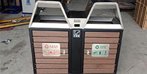 公園景區(qū)鋼木分類垃圾桶投口細(xì)節(jié)圖