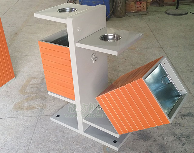 欣方圳定制鋼木分類垃圾桶桶身采用防腐、防水、防蛀的高檔木料精致而成,使其在露天環境下使用壽命更長,桶架無縫焊接上色高溫烤漆。
