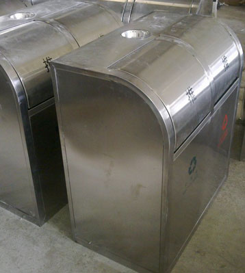 欣方圳不銹鋼彈蓋分類垃圾桶批量生產圖