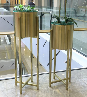 為美化裝飾商場內部環(huán)境,成都中海物業(yè)找到欣方圳訂購一批不銹鋼圓柱形帶架花盆用于擺放商場各樓層公共空間,種上鮮花綠植,即可美化裝飾商場空間...