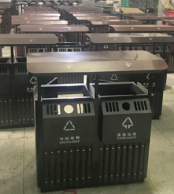 欣方圳景區戶外鋼木分類垃圾桶批量生產圖