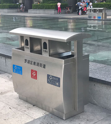 深圳羅湖火車站不銹鋼三分類垃圾桶擺放圖