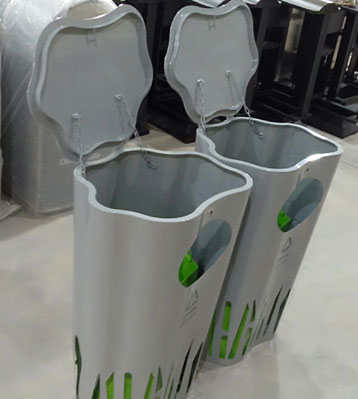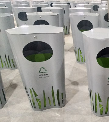 • 產品材質:異形金屬創意垃圾桶可根據客戶需求選擇不銹鋼材質或冷軋鋼表面烤漆工藝制作,堅固耐用,不易破損;耐火安全,抗高低溫,適合各種惡劣氣候條件;金屬亮澤 ,高雅美觀,廣泛適用于各種場所;內外表面光潔,減少垃圾殘留,易于清潔;可選配鍍鋅板內桶或玻璃鋼內桶,經久耐用;