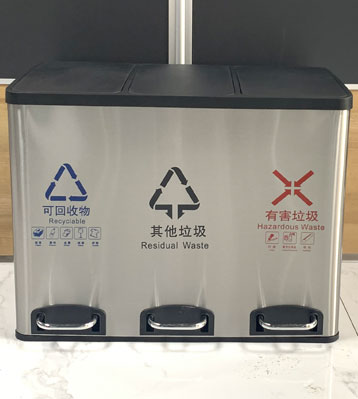 45L小區(qū)家庭不銹鋼三分類室內(nèi)垃圾桶