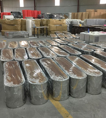 欣方圳不銹鋼長條橢圓休閑椅凳面防腐木材質制作流程示意圖,工藝領先,品質卓越,真正經久耐用。