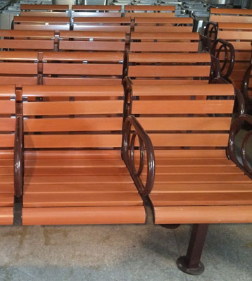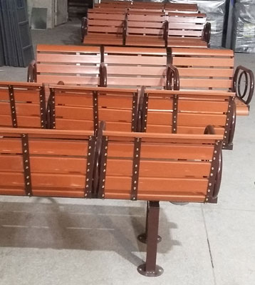 欣方圳戶外鋼制烤漆塑木帶扶手靠背園林椅椅條
