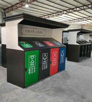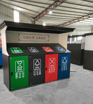 • 產品材質:小區垃圾分類房大容量分類垃圾桶站點整體尺寸制作需求可按地方標準要求定制,常用的制作材質有鍍鋅板、不銹鋼、戶外塑粉靜電噴涂,其工藝特點表現為較高的戶外適應性,表面涂層堅固,不易脫落,抗紫外線以及耐候性強。可回收物投口為藍色,其他垃圾為淺灰色,廚余垃圾綠色,有害垃圾為紅色,顏色搭配美觀,可配套洗手盆投放后清洗。.表面無毛刺、無披鋒,棱角和邊緣做圓角處理.