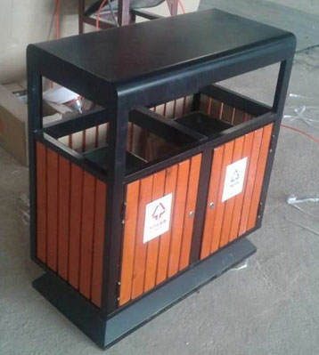 欣方圳社區戶外鋼木分類垃圾桶原材料采用真空泵排除空氣、填充防腐液、加壓滲透、抽真空排出多余防腐液達到先進的防腐防蟲工藝。