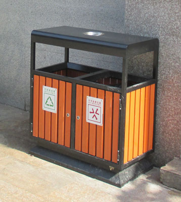 社區戶外鋼木分類垃圾桶桶身細節圖