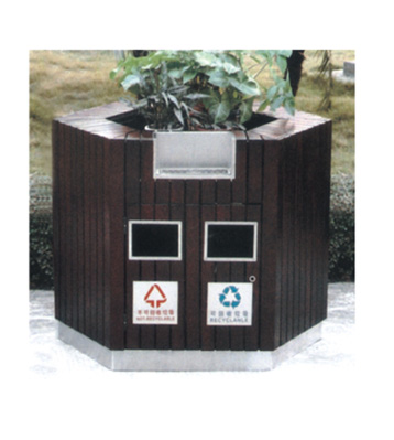 • 產品名稱:高鐵站鋼木垃圾桶帶花箱(高鐵站六角花盆垃圾桶)