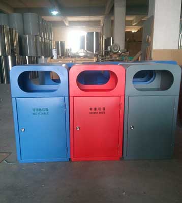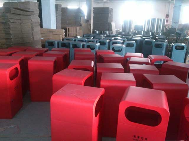 • 產品材質:欣方圳環保垃圾桶采用優質冷軋鋼材料經剪鈑下料、折彎、沖壓、焊接、打磨、等工藝:表面經過除油、噴砂防銹處理后,再進行酸洗磷化處理;表面清理干燥后整體進行靜電噴涂或烤漆處理,靜電噴涂是經過流水線高溫固化爐固化后再出爐冷卻,加工后的塑粉附著力強,不易剝落;