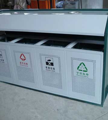 江西南昌園林綠化工程公司在室外分類垃圾桶的選擇上,采購的是當下流行的可回收物、其他垃圾、廚余垃圾、有害垃圾組成的4分法垃圾收集容器。鍍鋅板...